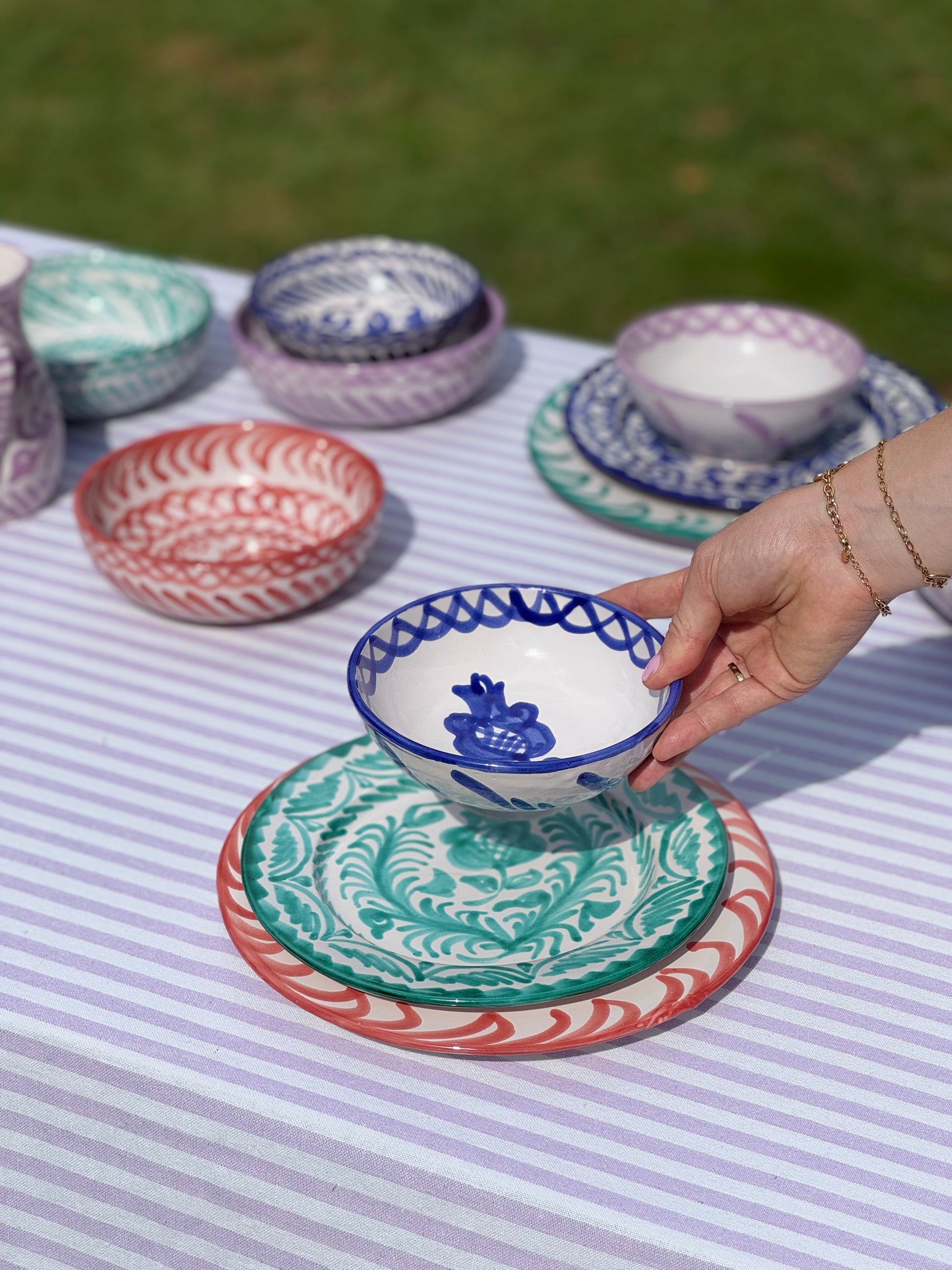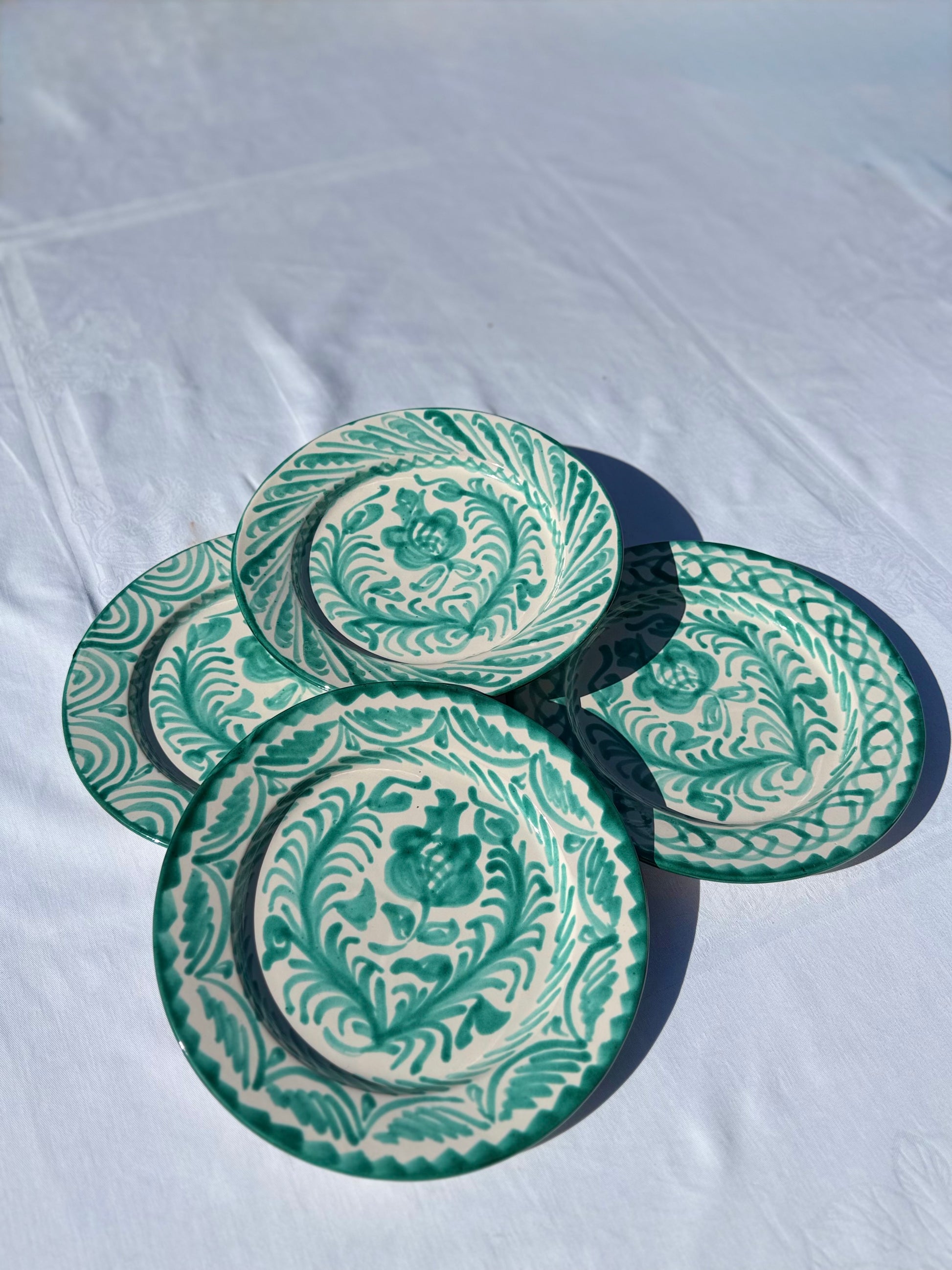 Haal de frisheid van Andalusië in huis met het Granada Bord in Verde. Dit handbeschilderde bord straalt rust en levendigheid tegelijk uit. De groene tinten en speelse details maken het ideaal voor elk eetmoment van de dag. Perfect voor een uitgebreid ontbijt, een lichte lunch of tapas tijdens een gezellige avond met vrienden.