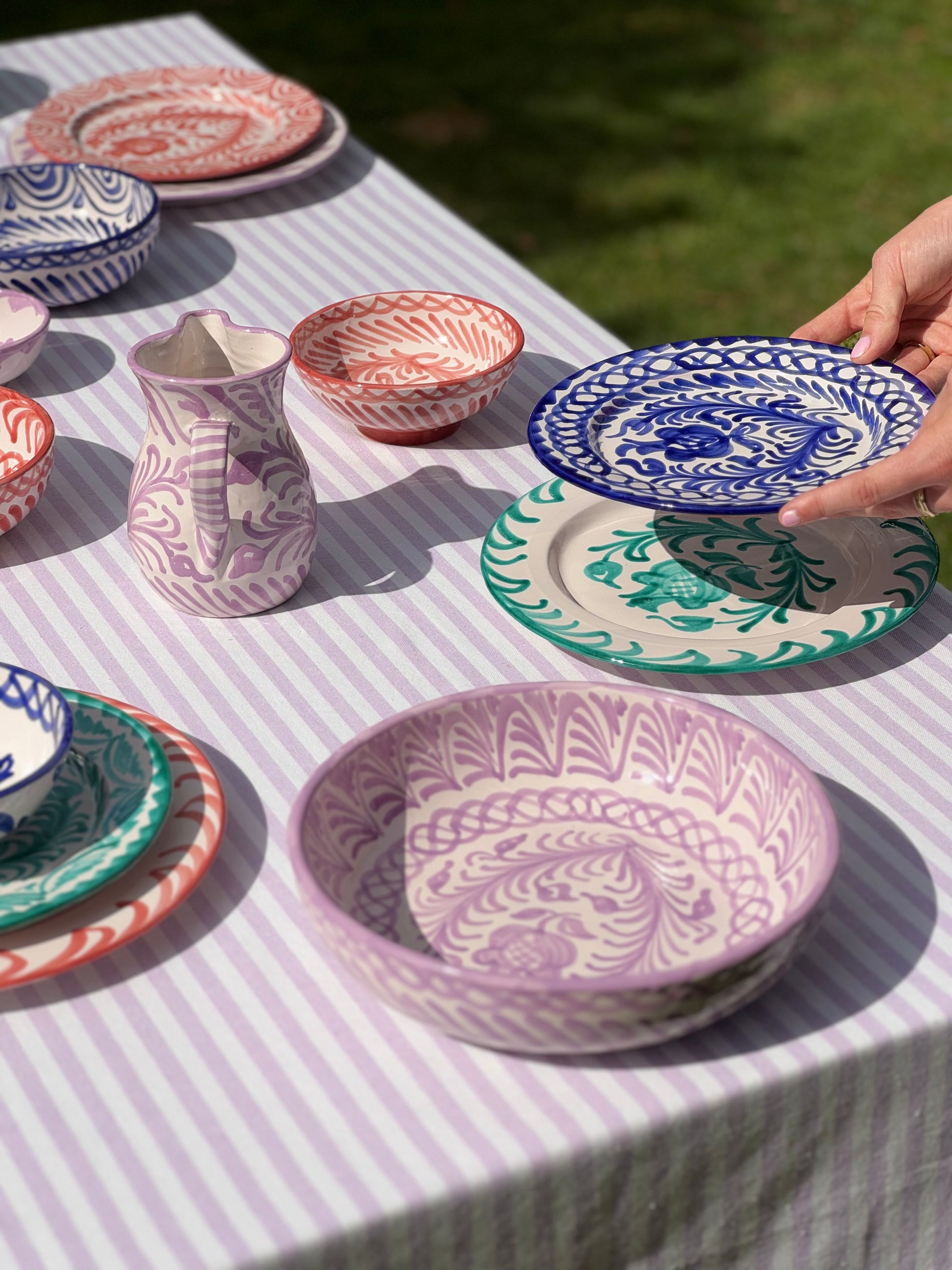 De Granada Kom Coral brengt warmte en levendigheid op tafel. De speelse koraaltinten en rijke patronen geven elk gerecht een vrolijke omlijsting. Of je nu een zomerse lunch serveert of kleine hapjes tijdens een diner, deze kom maakt van ieder moment een kleurrijke beleving. Elk stuk is met de hand beschilderd, waardoor je altijd een uniek item in huis haalt.